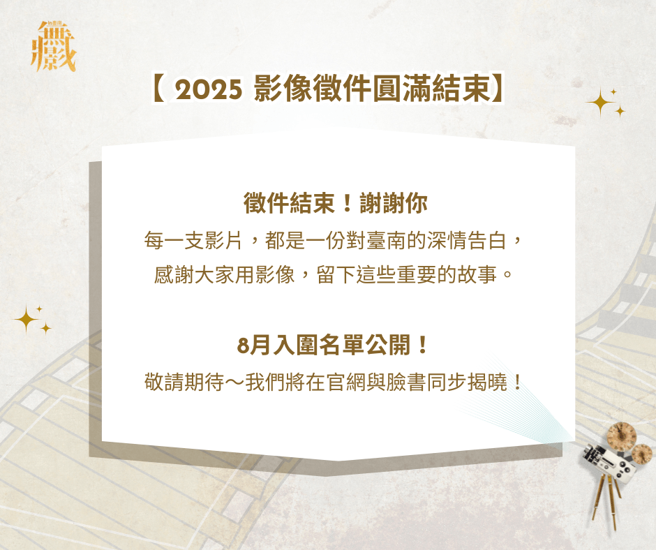 感謝所有熱情的參賽者,無論是否入圍、有無得獎,大家的作品與心意,都是臺南府城最珍貴的記憶!
